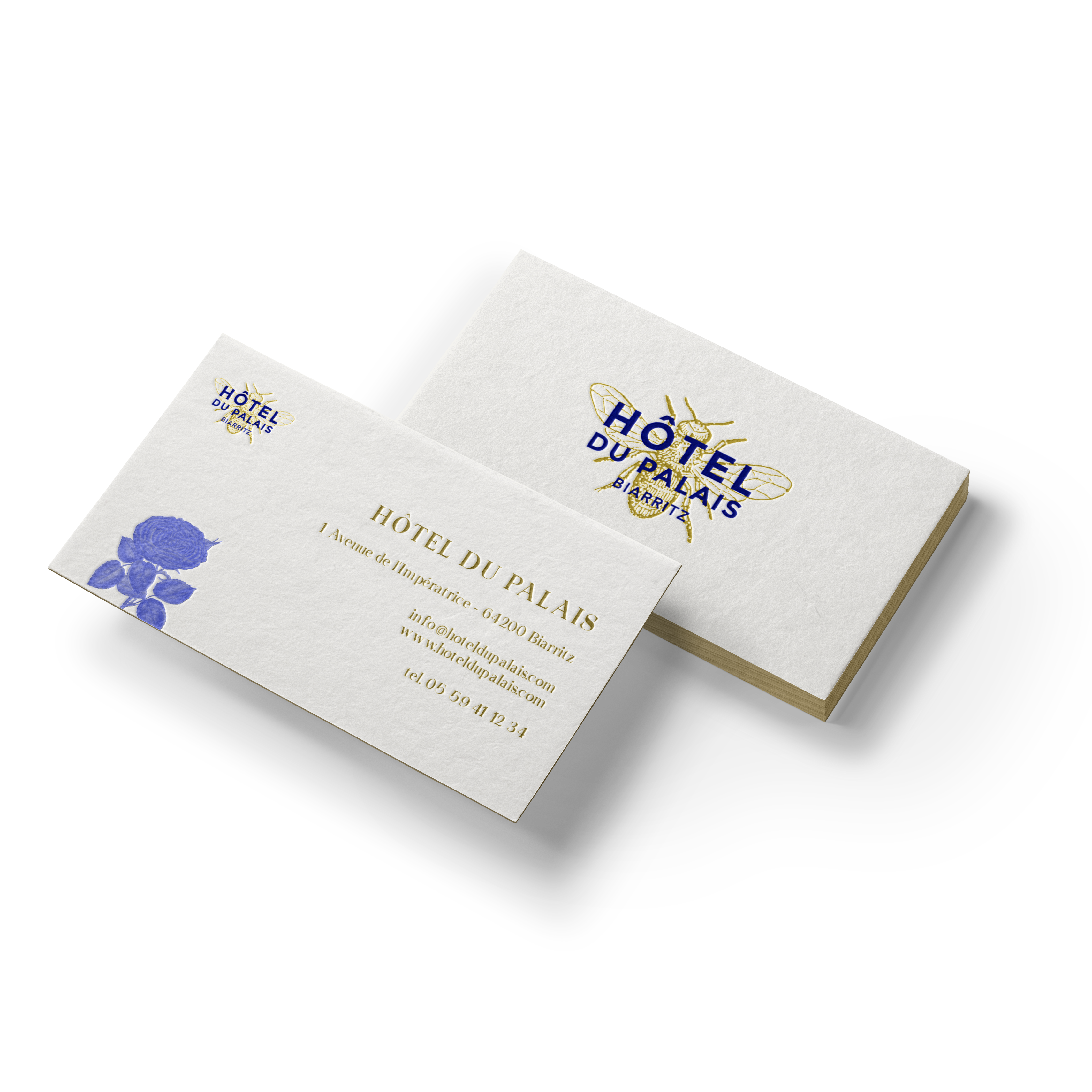 This new branding blends photographs with vintage imagery to honor the hotel's rich historical roots while embracing the present. The elegant and refined design features a modern twist, combining gold with electric blue. A bee, symbolizing royalty, restores the hotel’s noble heritage.