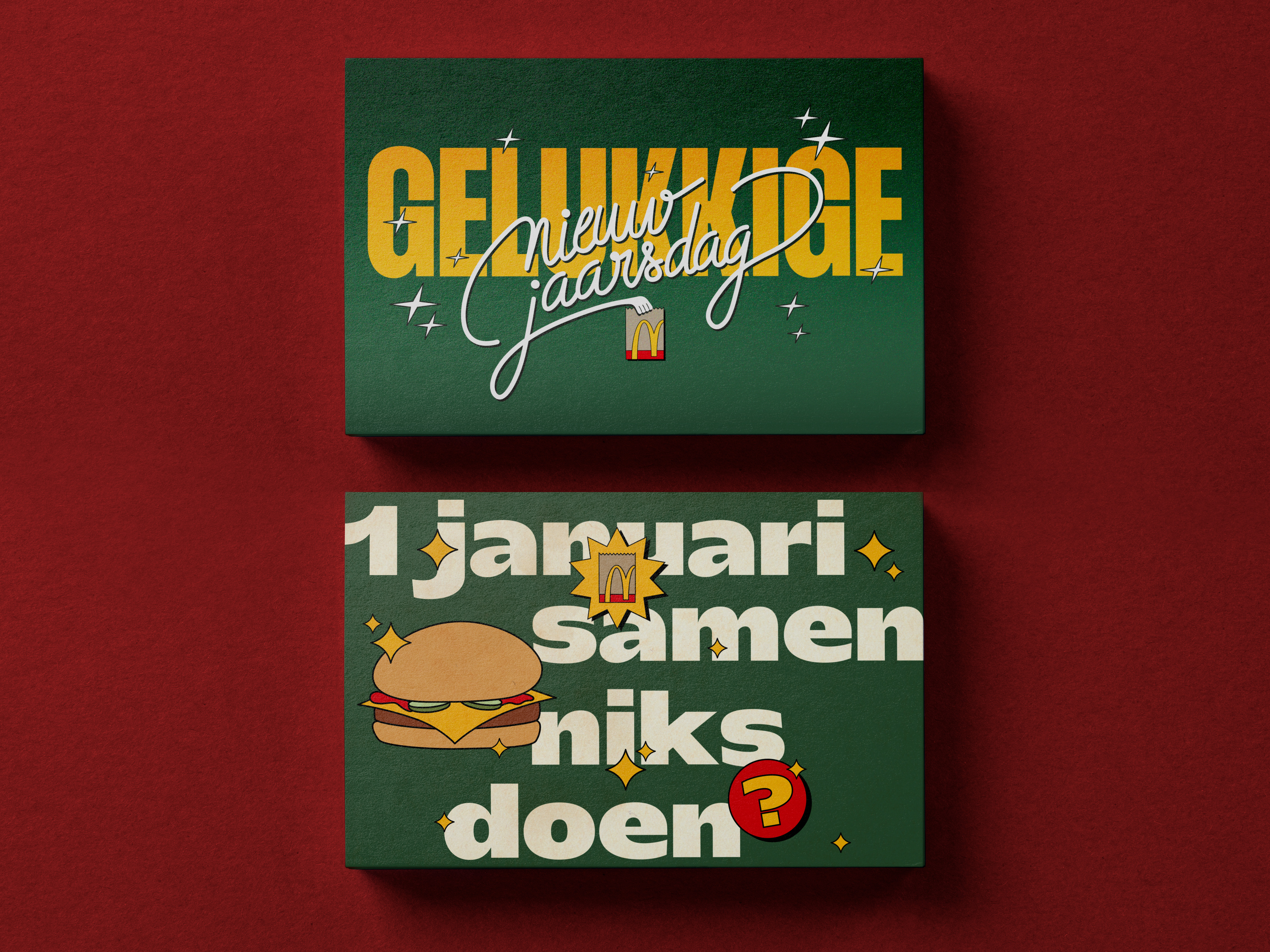 En collaboration avec l'imprimerie de cartes personnalisées Greetz. J’ai expérimenté de l’illustration ludique mêlée avec de la typographie et du lettering, tout en gardant les couleurs signatures de McDonald’s.